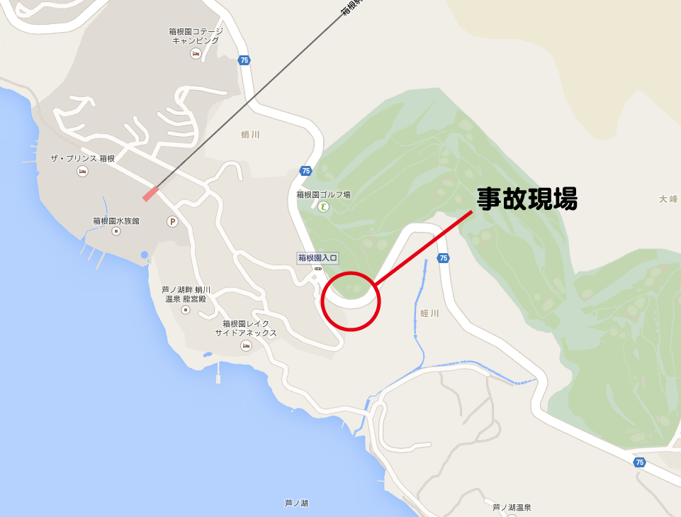 箱根の七曲がり、芦ノ湖スカイラインなどを走り、そして場所は箱根園ゴルフ場付近で前を一台の観光バスが走っていました。前を遅いバスに走られてはアクセルを持て余してしまいます。友達と思考が一致していたようで、友達はバスを抜きにかかりました。